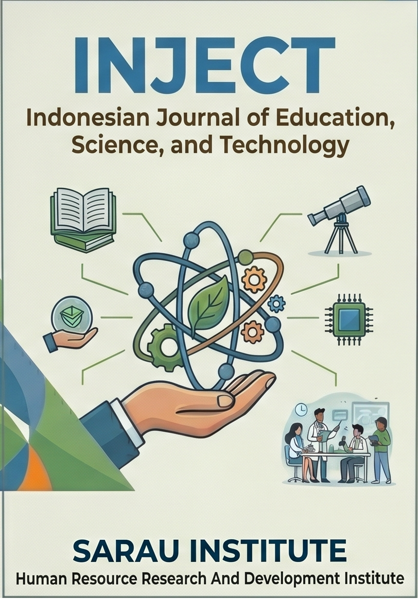 INJECT: Indonesian Journal of Education, Science, and Technology merupakan jurnal ilmiah dalam bidang Pendidikan, keilmuan, dan Teknologi Pendidikan yang diterbitkan oleh Sarau Institut. Jurnal INJECT ini mengkaji berupa hasil penelitian dan review dalam bidang kajian keilmuan yang memfokuskan pada pendidikan, baik pendidikan dasar, menengah dan perguruan tinggi, serta dalam pengembangan teknologi pembelajaran. Jurnal ini diterbitkan 2 (dua) kali dalam setahun (Mei dan November).